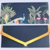 Bask in the opulence of a Mughal miniature. This exquisite Shagun envelope transports you to a paradise of manicured lawns, and vibrant flora. Imagine preening peacocks, graceful swans gliding on tranquil waters, all nestled amidst a tapestry of verdant greenery.