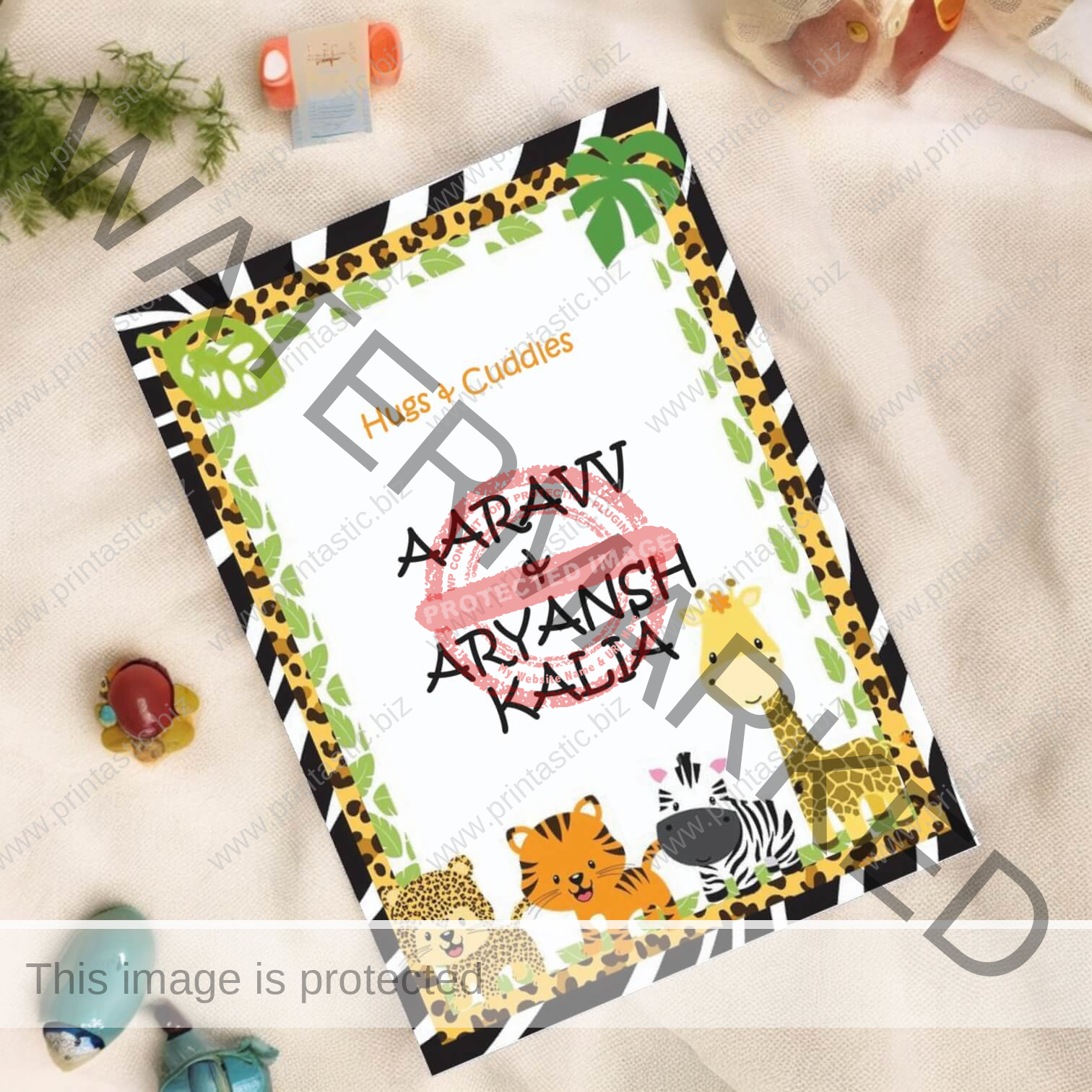 Create unforgettable memories with our Jungle Buddies gift tag for siblings! This gift tag features a playful crew of baby animals, including a smiling tiger cub, a leopard cup, a baby giraffe, and a baby zebra.